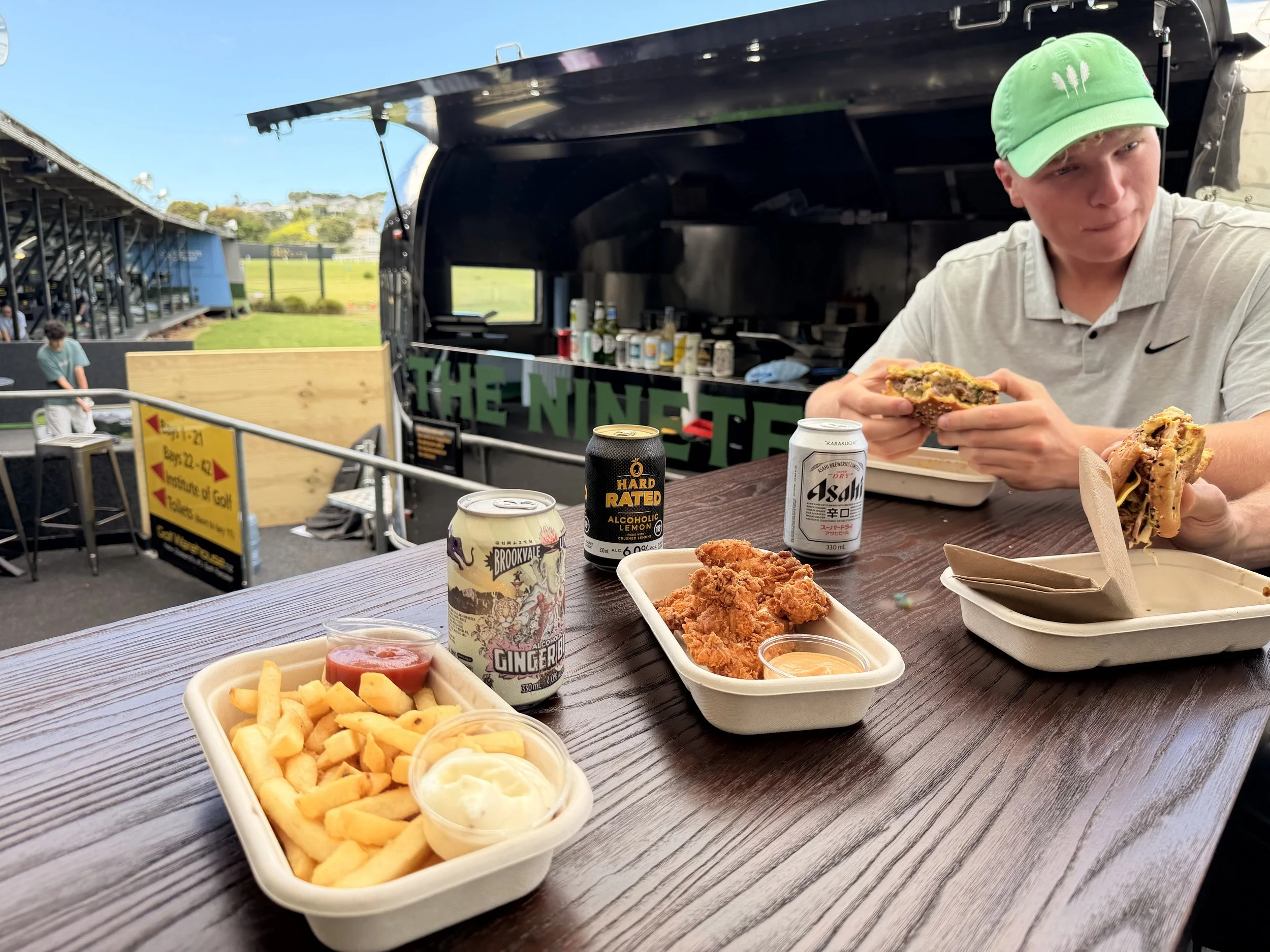 So that’s what we did. We are hospo kids from way back who love to get on the green. Long gone are the days of soggy sandwiches from a kiosk and a sneaky 6 pack stashed away in your bag. This is fun golf, good food and drinks you don’t have to hide.